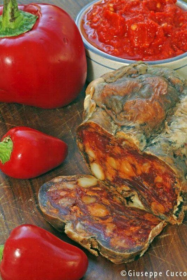 Schietta e genuina come vuole la tradizione, si produce con coscia e lonza del suino, tagliate a grana grossa e condite con sale, pepe nero in grani e peperoncino piccante in polvere. La parte magra si presenta di un colore rosa brillante mentre il grasso di un colore bianco rosato, tipici di questo salame. Il profumo è caratterizzato da una delicata aroma di carne stagionata, al gusto è morbida, ma compatta, piccante al punto giusto.